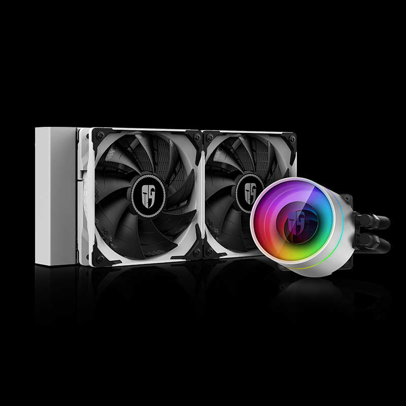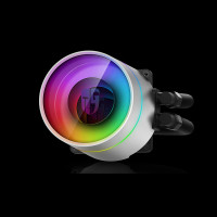 Le système de refroidissement liquide pour processeur DeepCool CASTLE 240EX A-RVB WH AIO offre un éclairage RVB exceptionnelle ainsi que deux ventilateurs PWM DeepCool CF120 A-RVB et notre miroir infini emblématique sous un radiateur de 240mm.